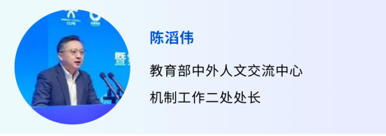 教育部中外人文交流中心机制工作二处处长陈滔伟作专题发言,从教育强国建设、教育对外开放工作部署等国家战略层面解读中外人文交流教育实验区建设初衷、进展情况、实施重点与未来展望。